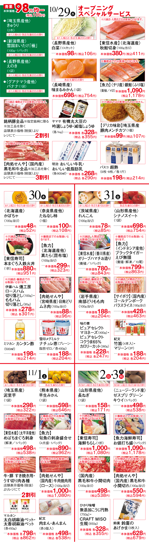 ●2025年10月29日(水)~2025年11月3日(月・祝)まで●食料品