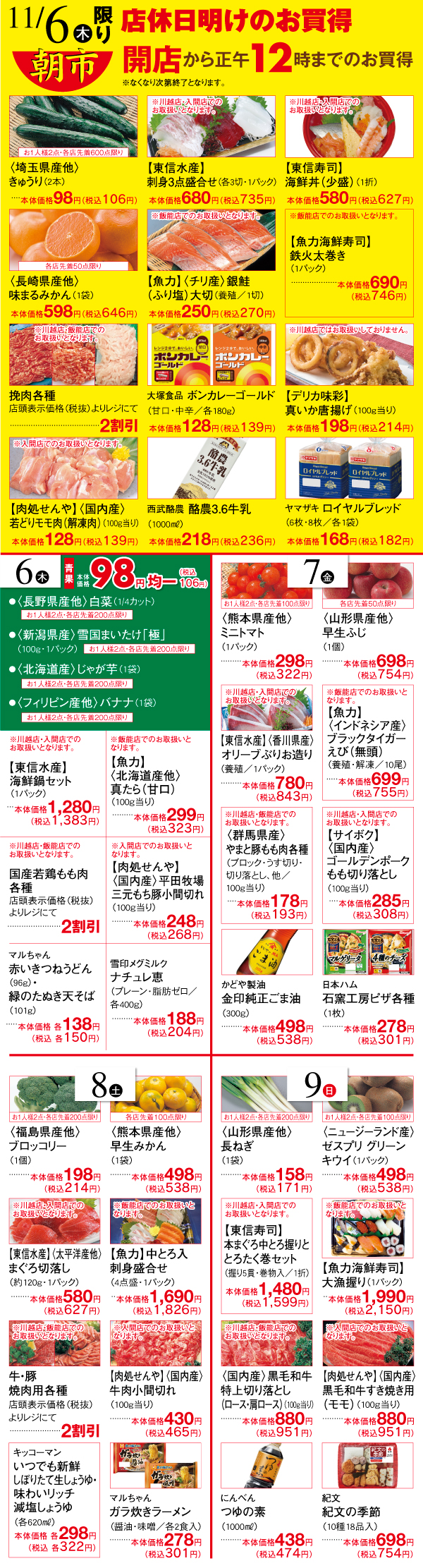 ●2025年11月6日(木)~2025年11月9日(日)まで●食料品