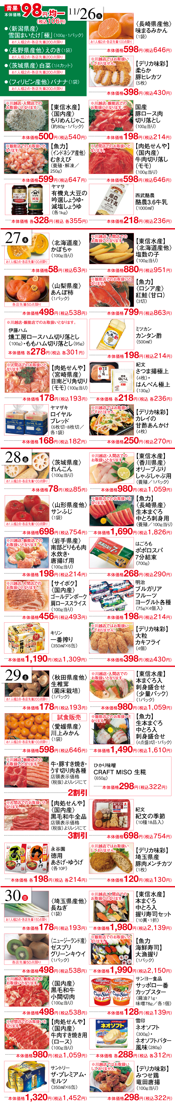 ●2025年11月26日(水)~2025年11月30日(日)まで●食料品