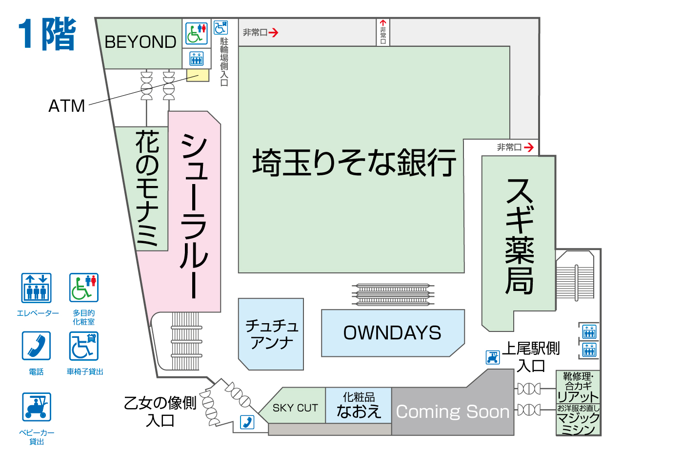 ●埼玉りそな銀行 ●ATM ●スギ薬局 ●OWNDAYS ●リアット ●マジックミシン ●シューラルー ●なおえ ●モナミ ●ビヨンド ●スカイカット ●チュチュアンナ
