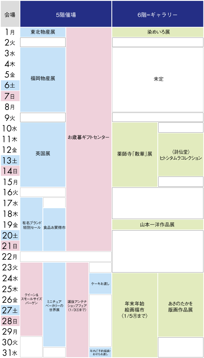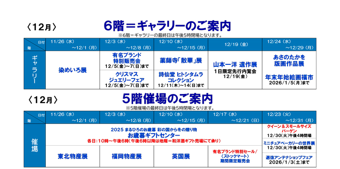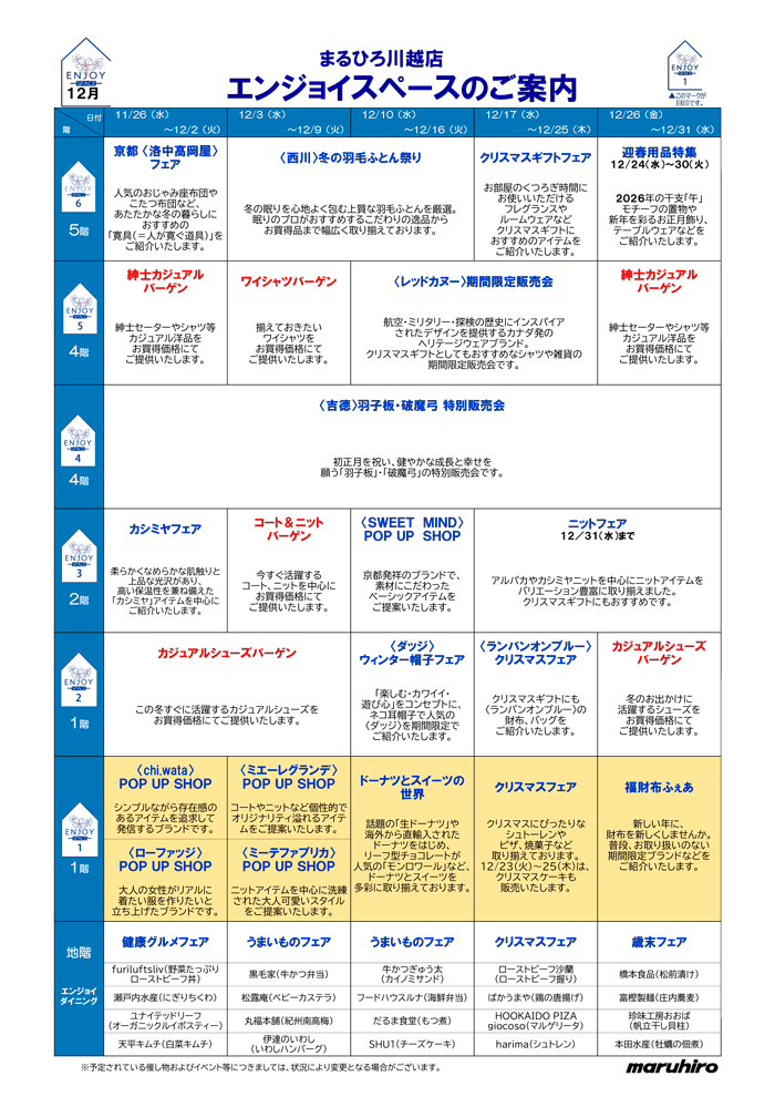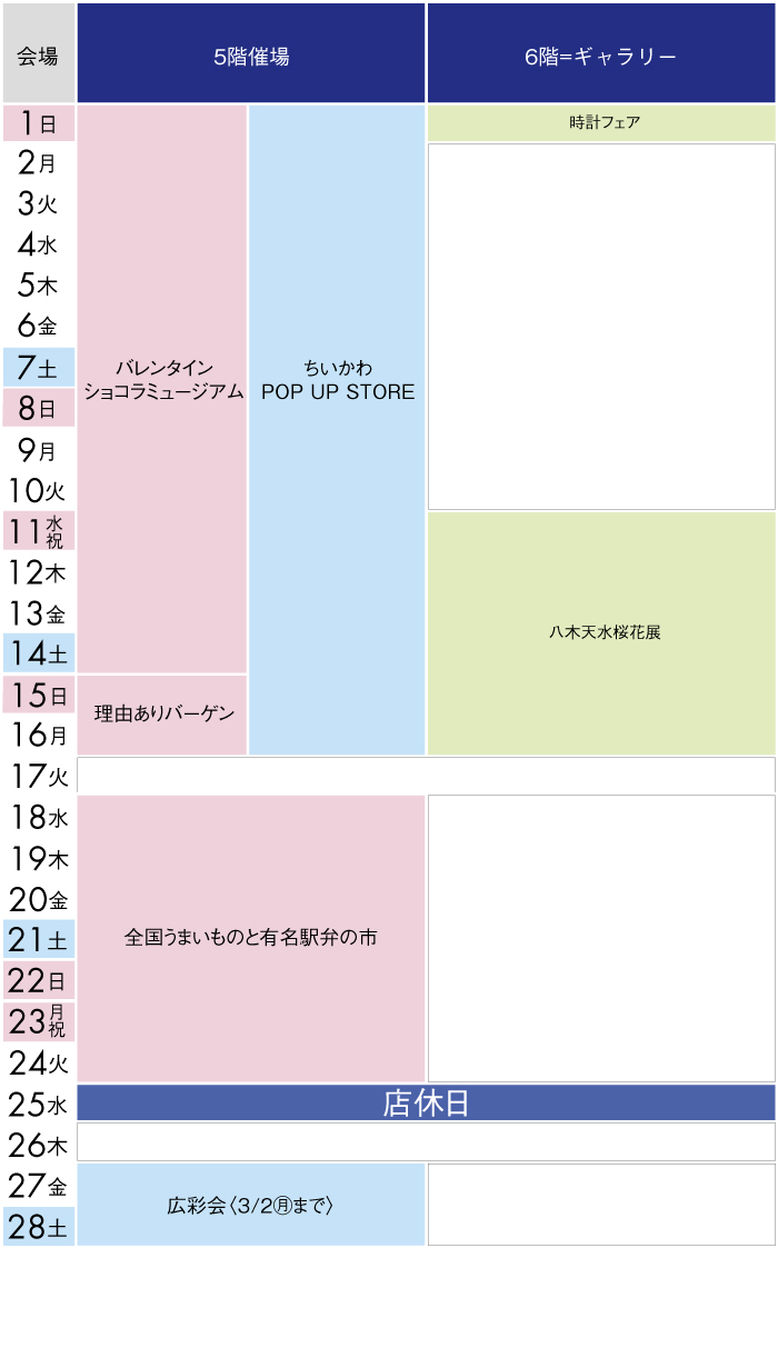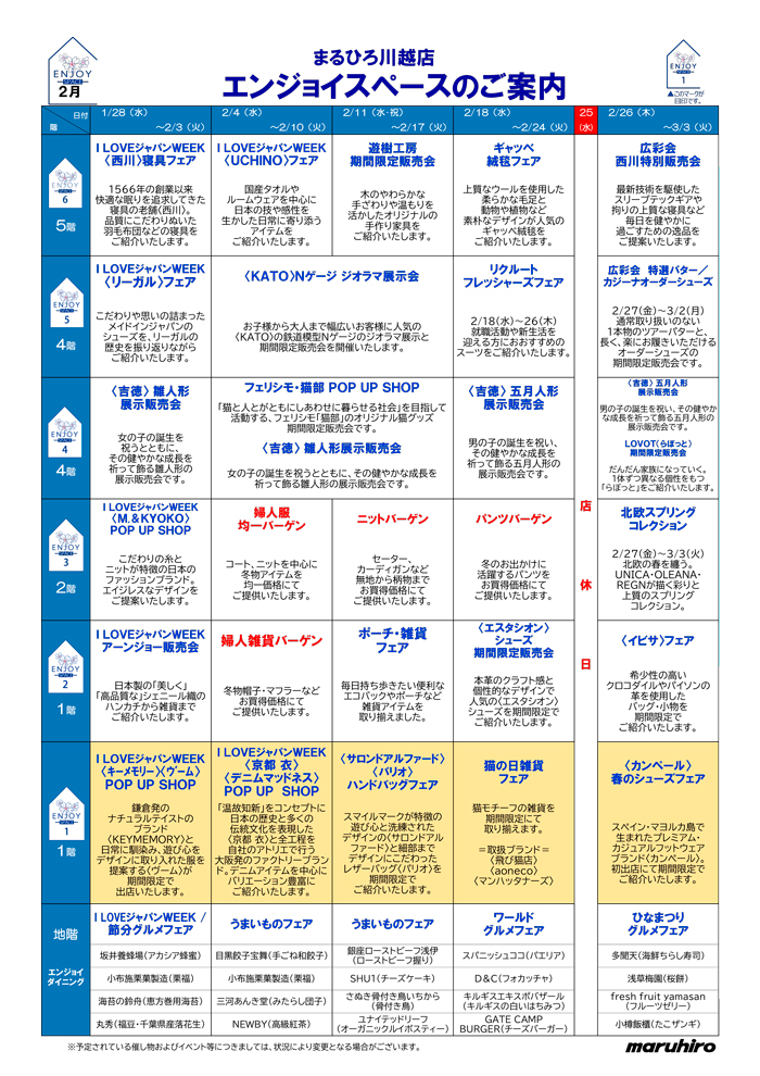 川越店各階催し物のご案内 イベント一覧はこちらから